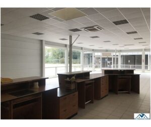 Ensemble immobilier situé à proximité du centre-ville, sur un axe passant, comprenant divers entrepôts, deux magasins, une salle de réunion, plusieurs hangars de stockage, ainsi qu’une maison d’habitation avec cinq chambres.
