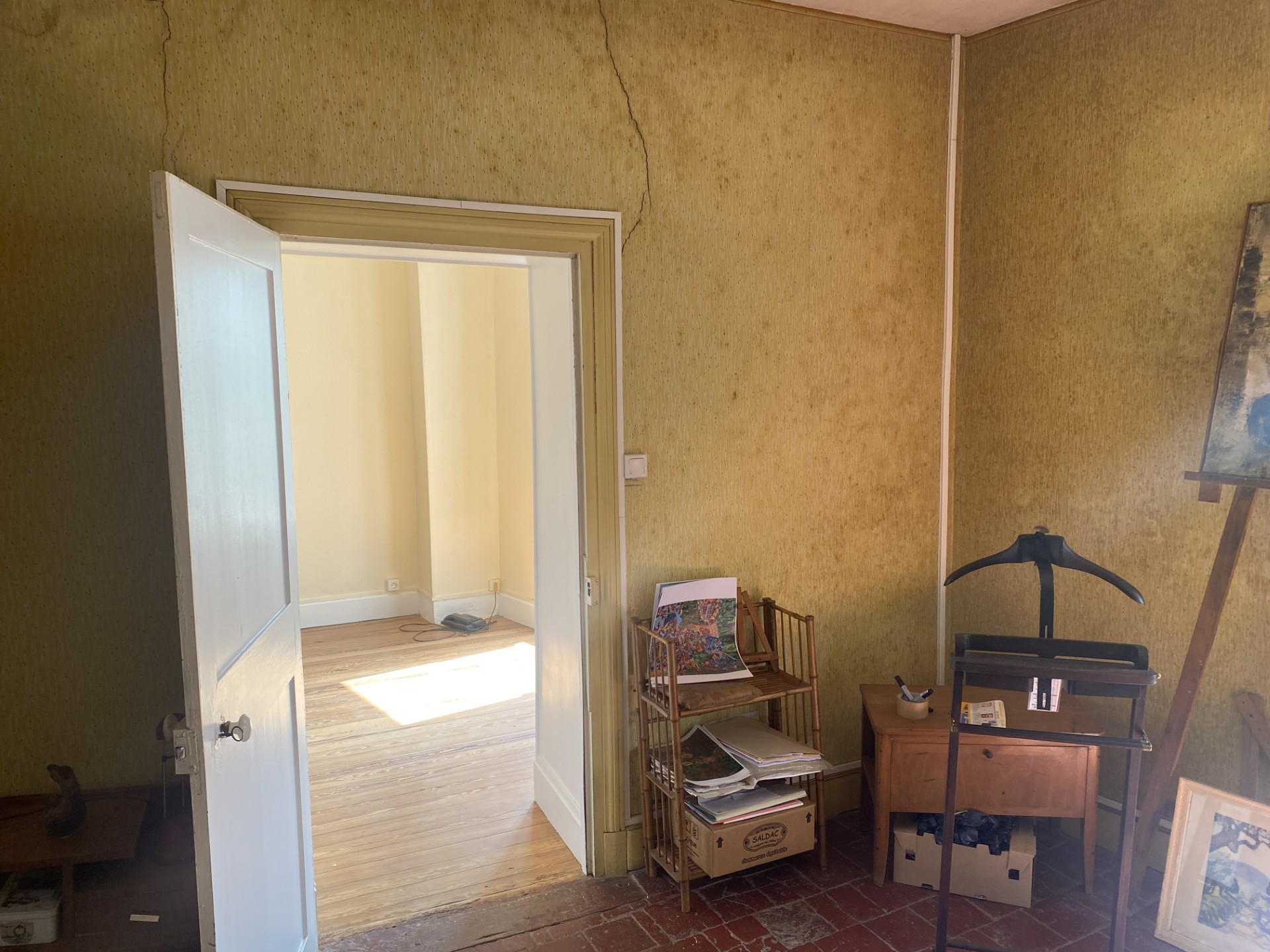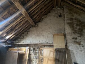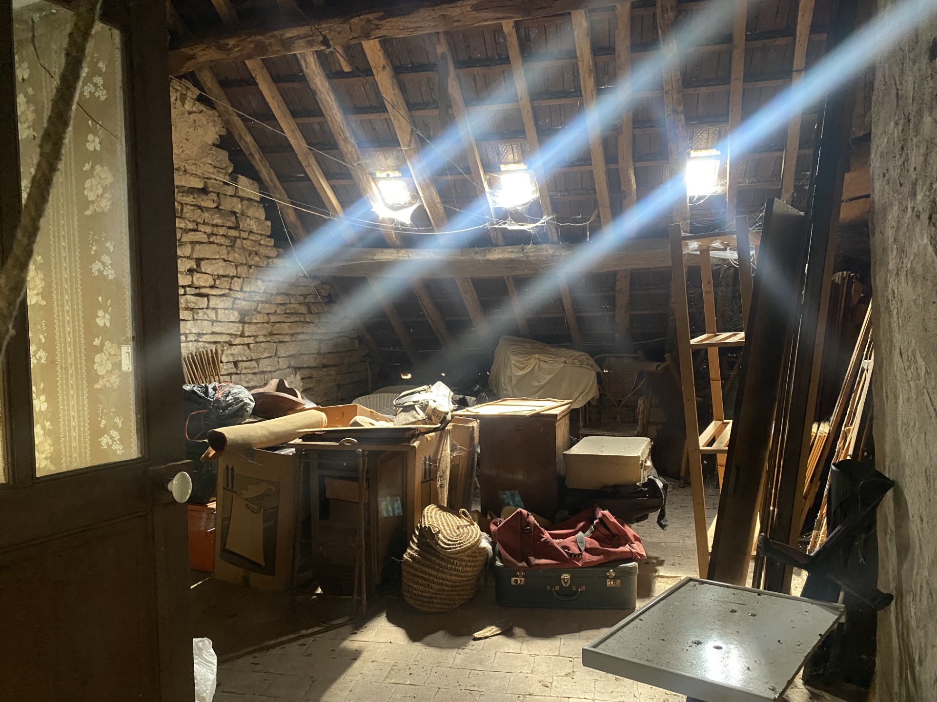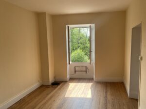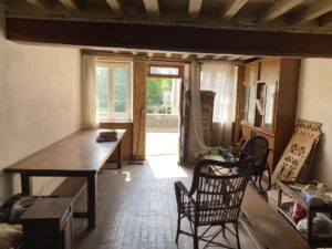 Maison de village avec vue sur la Cure, comprenant au rez-de-chaussée une entrée sur pièce de vie, une grande cuisine avec accès à la cave, une salle d’eau et des WC.